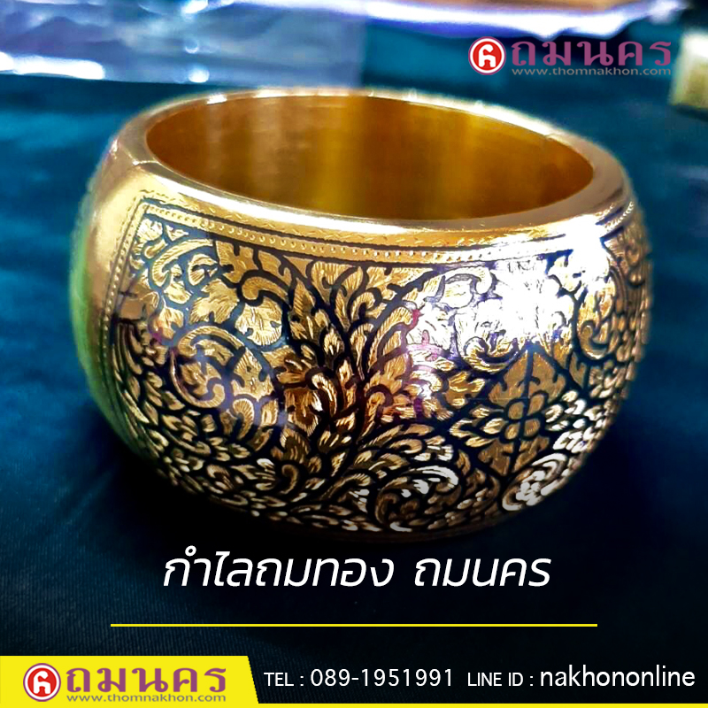 กำไลถมทอง หน้ากว้าง 4 ซม. แบบล็อค #ถมนคร กำไลถมทอง วัสดุตัวเรือนเงินแท้ ทาทองคำแท้ งานทำมืองานละเอียดสวยงาม ชิ้นงานประณีต ด้วยลวดลายศิลป์ลายไทยโบราณ ดูเข้มขลังด้วยความศรัทธา